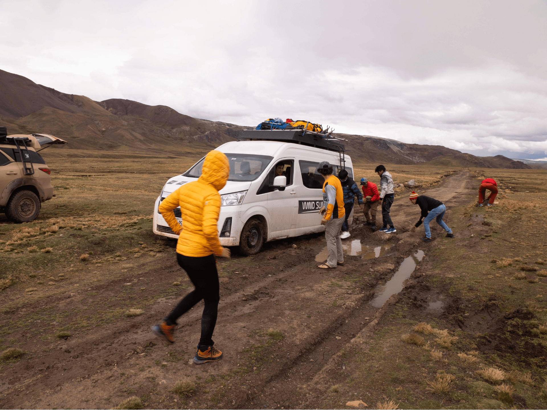 Getting to base camp at 4900m had its moments. We had engine trouble, our car got stuck on the primitive roads and we had to cross a lake in boats.