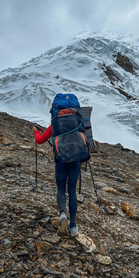 the high camp at 5400 metres (18,000ft). It took four hours, heavily loaded with paragliders and our high mountain equipment.