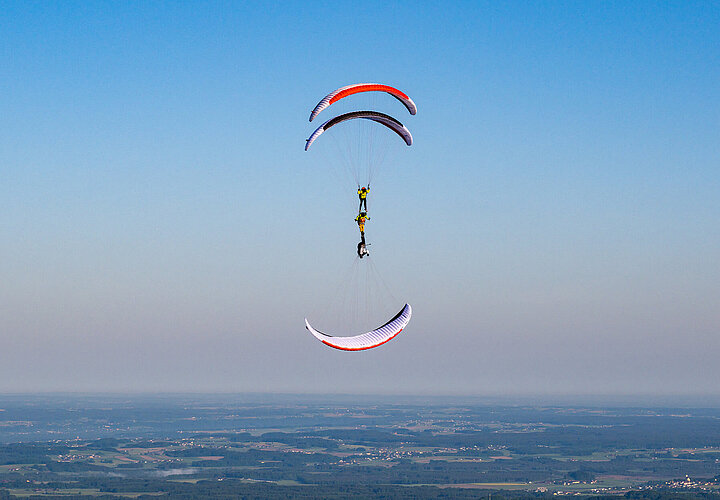 Ein Sprung aus dem Ballon, drei Schirme, ein Herzschlag: In Salzburg zeigen drei Acro-Piloten atemberaubende, millimetergenaue Manöver im…