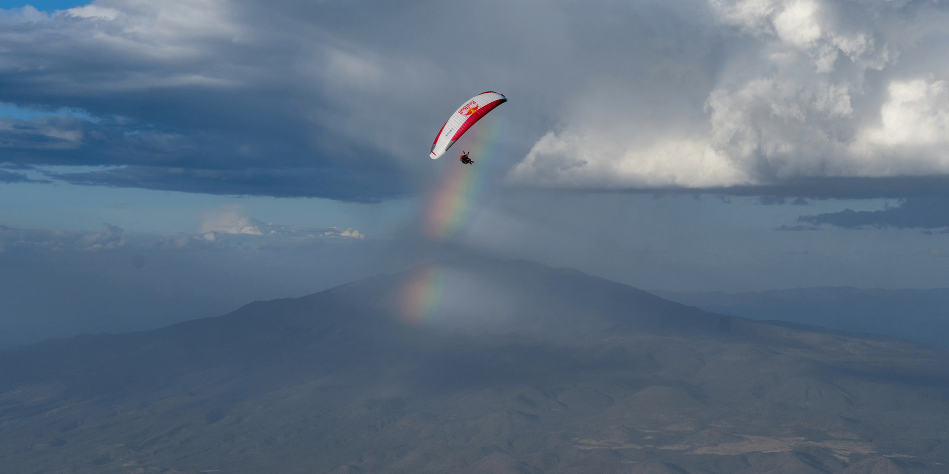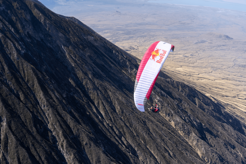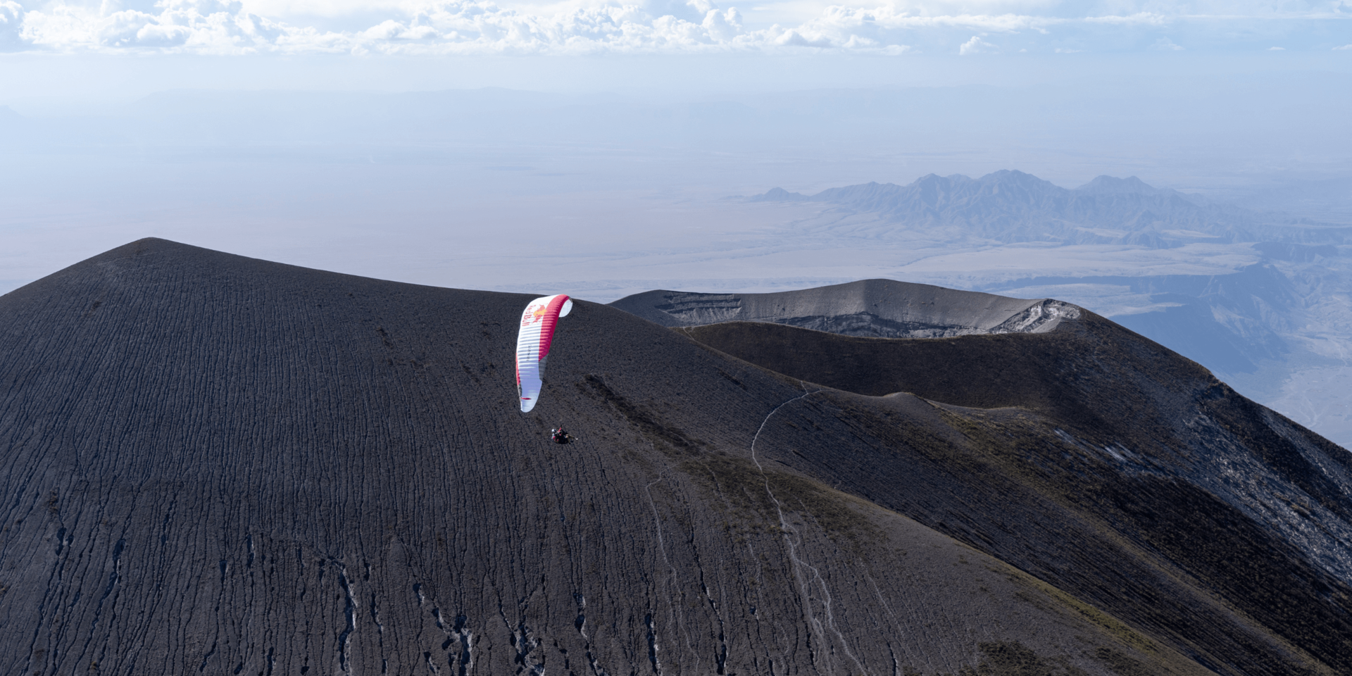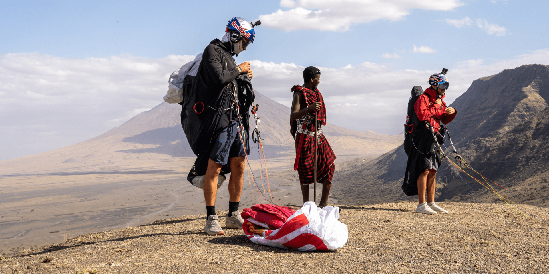 Tatsächlich: Am nächsten Morgen weckt eine sanfte Brise neue Hoffnung auf den langersehnten Flug. Mit der Winde starten Tom, Horacio und Jake und finden sich wenig später durch die Kraft der starken Thermik über dem Ol Doinyo Lengai wieder – dem Mountain of God. Ihr Plan ist, am Rand des nördlichen Kraters des aktiven Vulkans zu landen. Über zwei Stunden brauchen sie, nachdem Wind und Thermik sie immer wieder über ihr Ziel hinausschiessen lassen. Tom schafft es als erster, in einem waghalsigen Manöver den Schirm gezielt kurz unterhalb des Kraterrands zu stallen, sodass er eine präzise Punktlandung hinlegt. Während die Sonne langsam untergeht, bereiten sie ihr Biwak vor und erkunden das pulsierende Herz des Kraters.